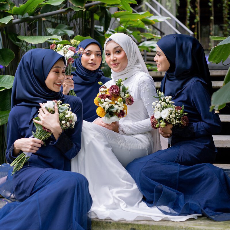 Nah, kalau seragam bridesmaids warna navy, pas dikenakan untuk acara pernikahan dengan tema elegan.